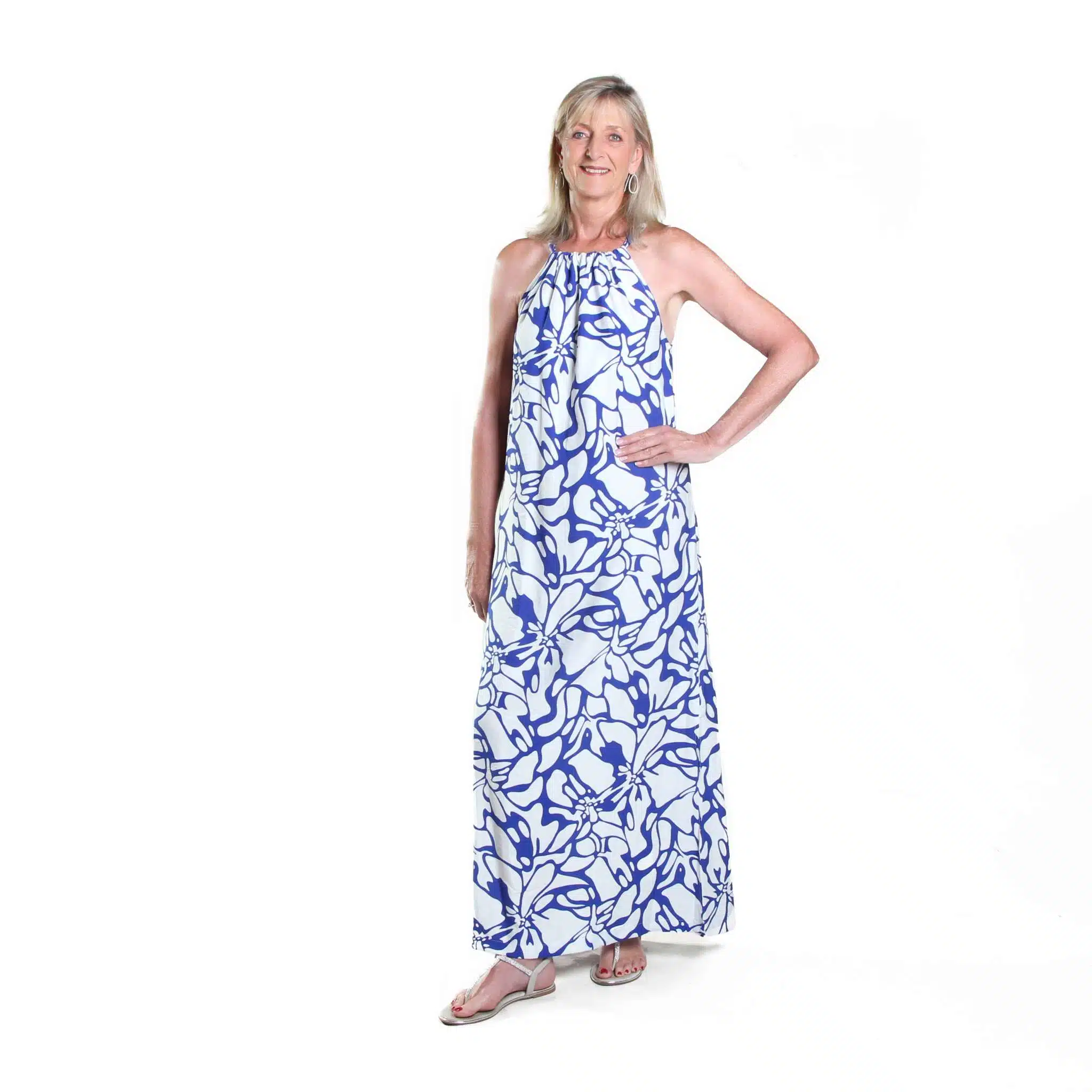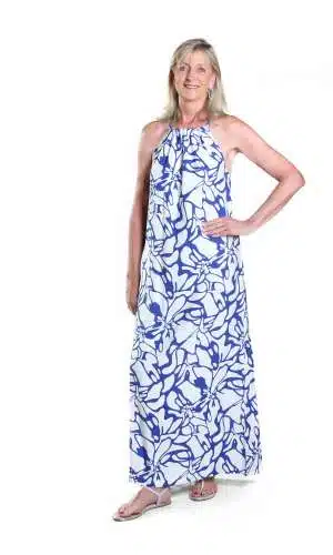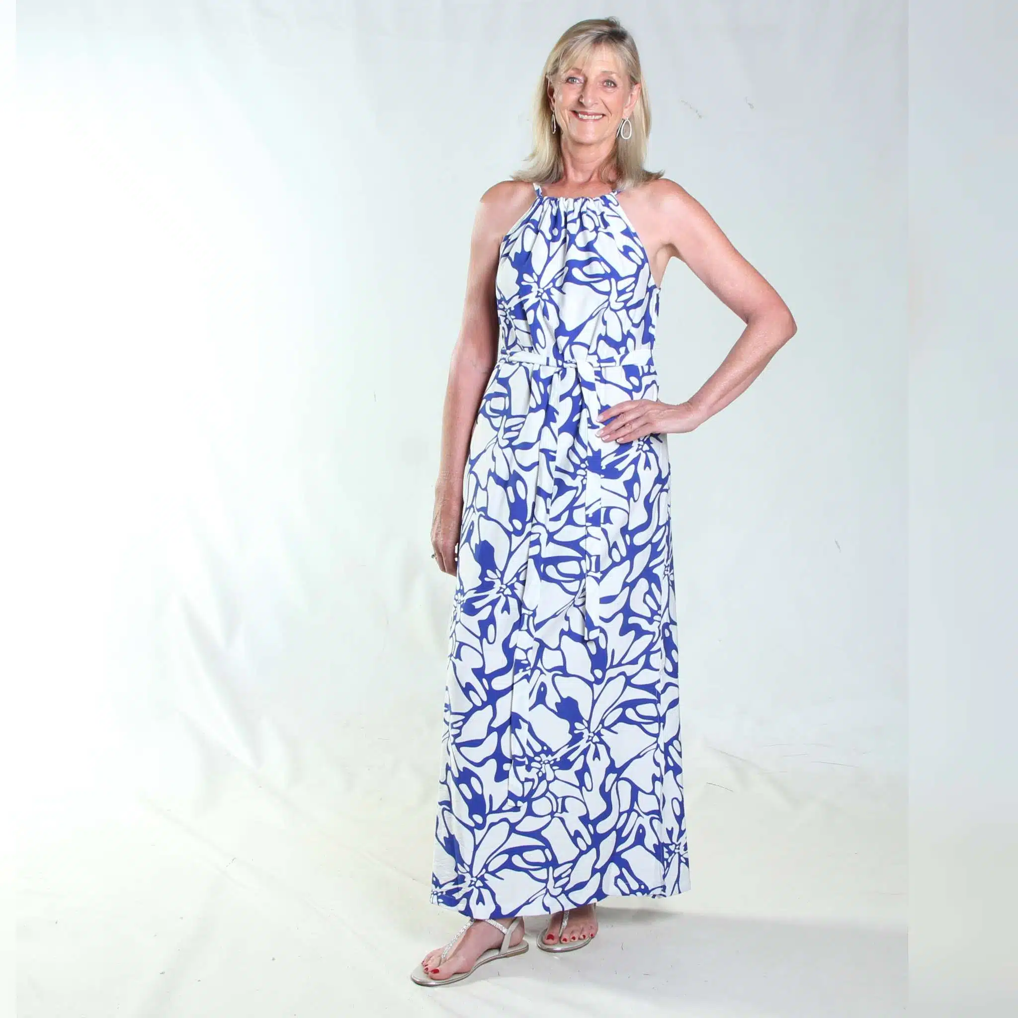 Perfect for hot summer days! The cool, on-trend and effortlessly comfortable Halter Maxi Dress flatters tall figures and shows off shoulders – with a high neckline and long flowing lines for that easy, breezy feeling. Includes a matching fabric belt for optional waist cinching.